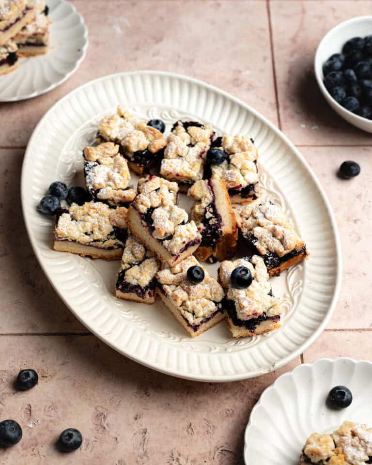 Buttery, melt-in-your-mouth, tender, there truly aren't enough adjectives to describe how delicious these Sourdough Blueberry Jam Bars are. Made with a homemade blueberry jam baked on top of a sourdough discard shortbread crust, these are a great way to use excess sourdough starter and packed with berry flavor.