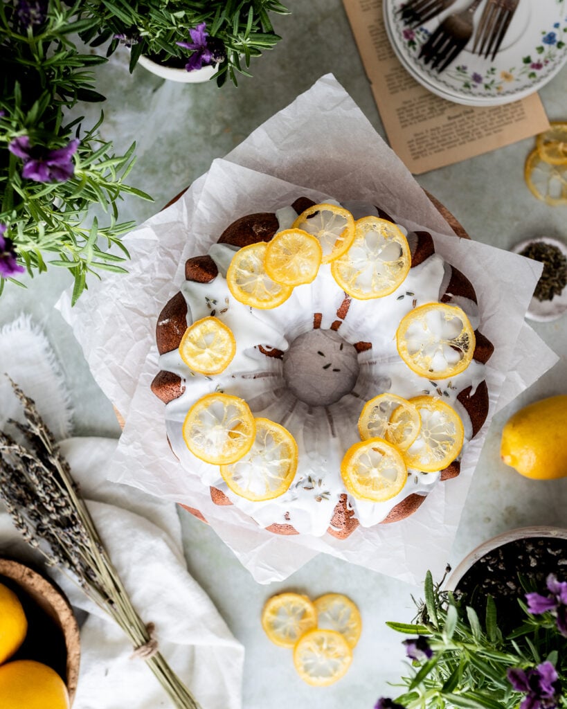 Lemon Lavender Sourdough Bundt Cake